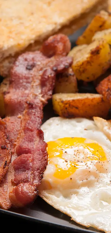 1 egg / sourdough bread / Crispy Potatoes / bacon ham or sausage